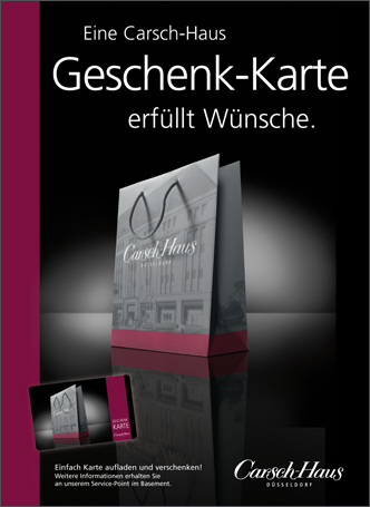 Stilsicher und mit einem ausgeprägten Gespür für aktuelle Fashion- und Designtrends profiliert unsere Anzeigenkampagne das Carsch-Haus als führende Einkaufsadresse der Stadt.