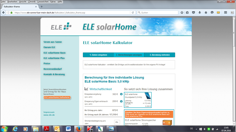 Produkt-Microsites, z.B. für die Photovoltaik-Lösung ELE solarHome, öffnen neue Wege der Vermarktung.