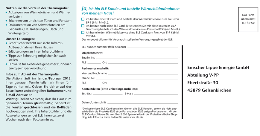 Punktgenaue Ideen als Schlüssel zur wirkungsvollen Kundenansprache: Unsere Direktmarketing-Maßnahmen für ELE erzielen hohe Responsequoten – in der Bestandskundenpflege ebenso wie bei der Neukundenakquise.